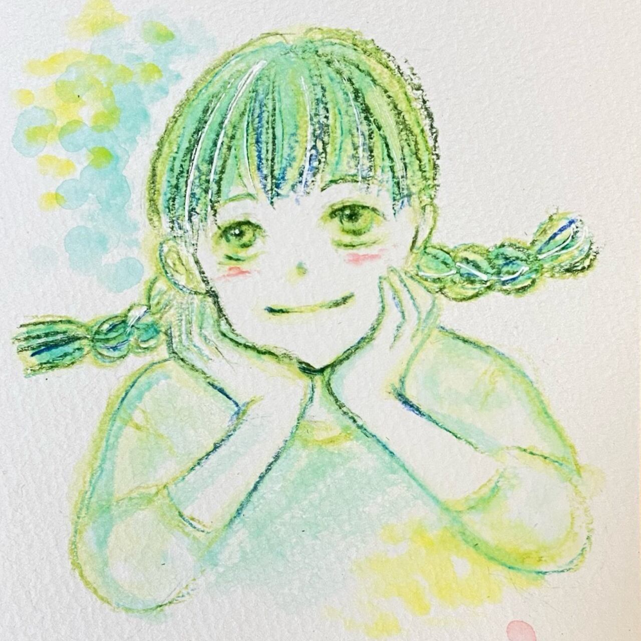水彩色鉛筆でやわらかさと癒しをテーマに描きました